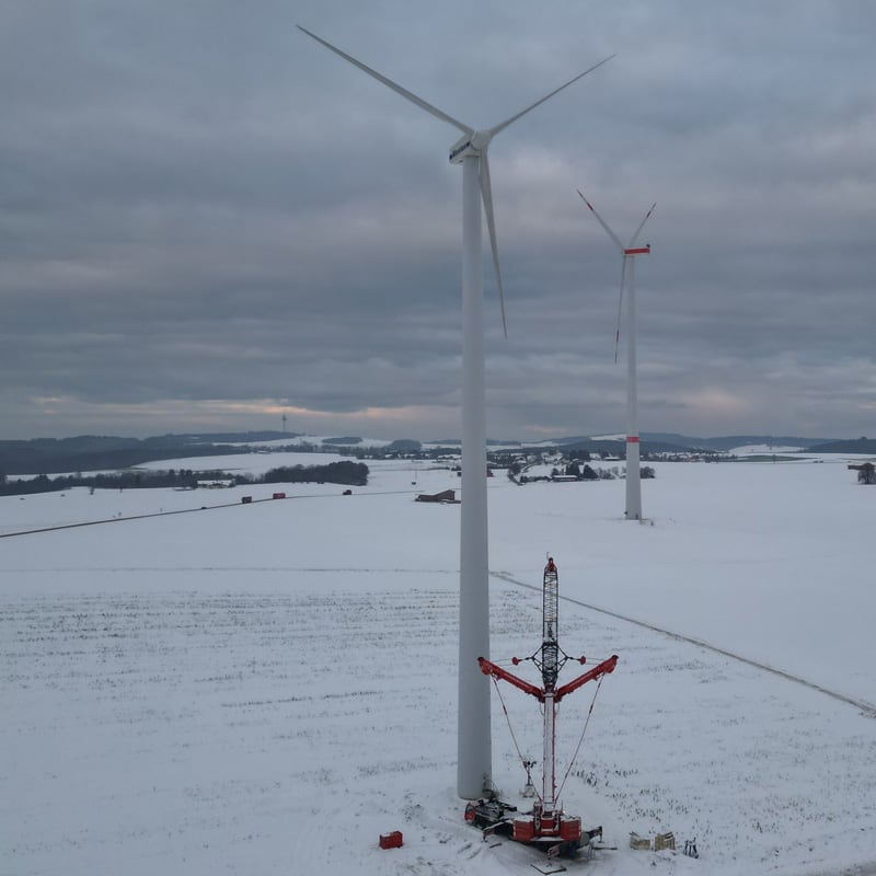 Im April 2023 erhielt die SWF die Genehmigung für die Errichtung der beiden neuen Windenergieanlagen. Im Mai beteiligten wir uns erfolgreich an der EEG-Ausschreibung und im Juli erfolgte die Auftragsvergabe an den Windkraftanlagen Hersteller. Somit konnten im August die baulichen Vorarbeiten mit geologischen Probebohrungen beginnen. Es wurden Kranstellflächen für einen Kran mit 188m Ausleger & 170m Hubhöhe erstellt. Ende des Jahres wurde dann die letzte der vier alten Windkraftanlagen abgebaut, Die Errichtung und Inbetriebnahme der neuen Anlagen ist im Frühsommer 2024 geplant.